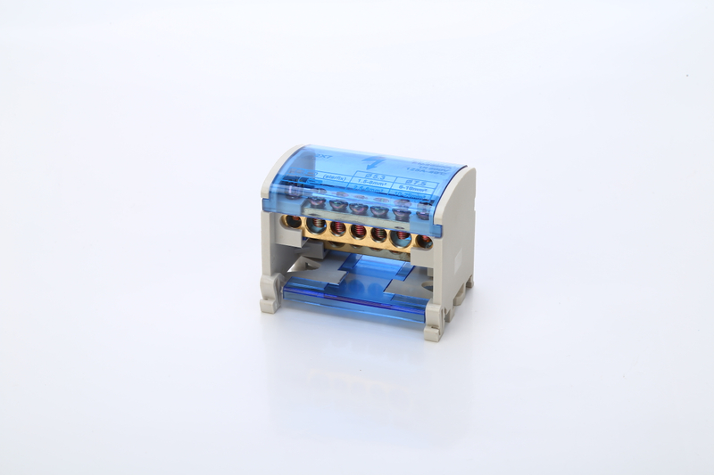 蓝色螺丝黄铜连接器DIN导轨铜终端块和中性块6p分配盒终端条