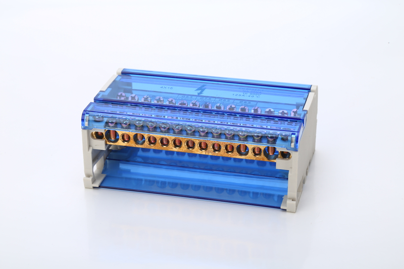 蓝色螺丝黄铜连接器DIN导轨铜终端块和中性块4P分配盒终端条